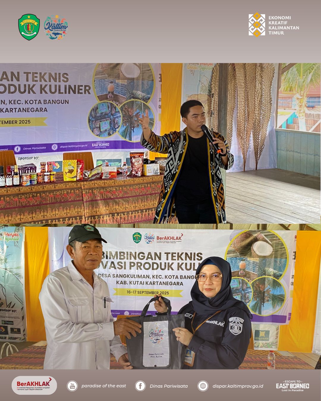 Bimtek Inovasi Kuliner di Desa Sangkuliman Hasilkan Produk Olahan Berbasis Potensi LokalKutai Kartanegara – Dinas Pariwisata Provinsi Kalimantan Timur menyelenggarakan Bimbingan Teknis (Bimtek) Inovasi Produk Kuliner pada 16–17 September 2025 di Desa Sangkuliman, Kecamatan Kota Bangun, Kabupaten Kutai Kartanegara.